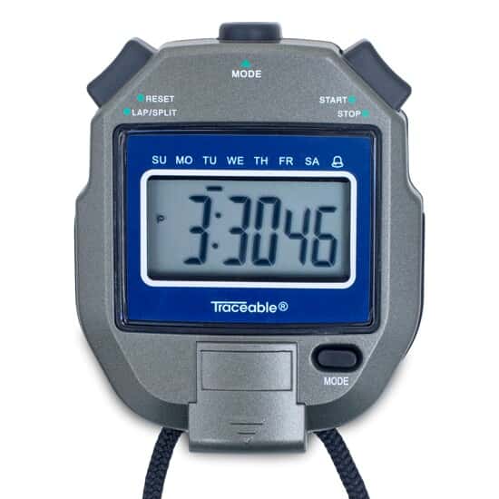 The big-digit stopwatch delivers 0.001% accuracy, making it perfect for professionals who require high-accuracy timing in laboratory, industrial, and quality control environments. Featuring a large, high-visibility display, the big-digit stopwatch provides clear, easy-to-read numbers for quick reference, even in fast-paced environments. Multifunction stopwatch capabilities include split-time, memory recall, and countdown timer functions. Water-resistant, O-ring-sealed, and shock-resistant ABS plastic case has nonslip rubber sides—ideal for lab and plant use.